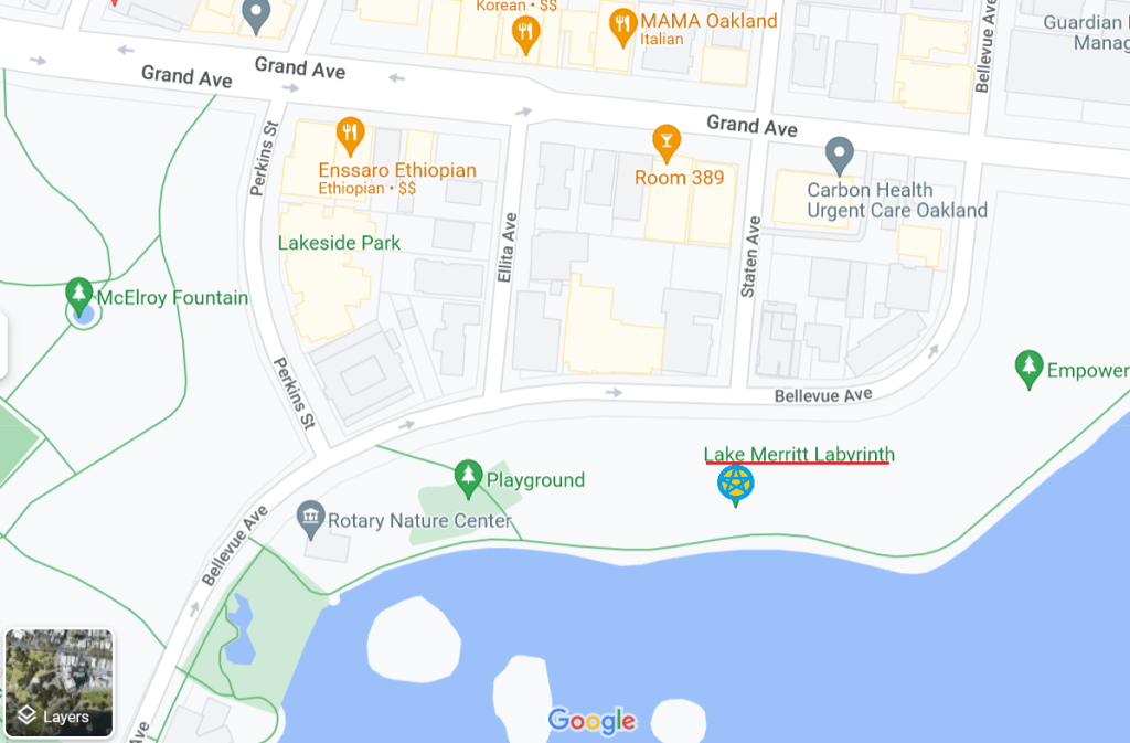 Meet at the Lake Merritt Labyrinth, 500 Bellevue in Oakland (map below).